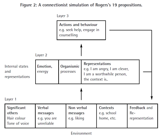 Ward (2008) showed that a neural network model could be used to capture the principles of client centred therapy, and that properties such as transference would emerge from this model.